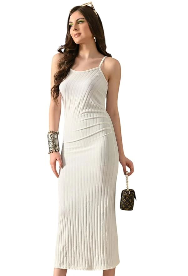 White Ribbed Cami Midi Bodycon Dress​ -K6GAEQ