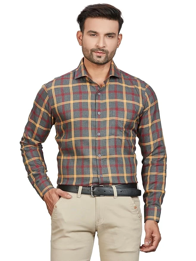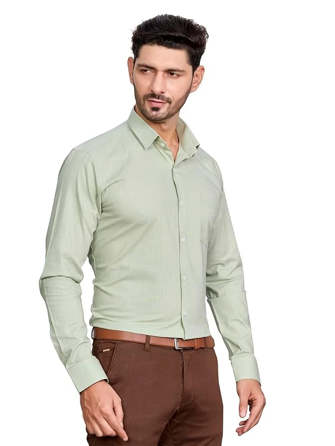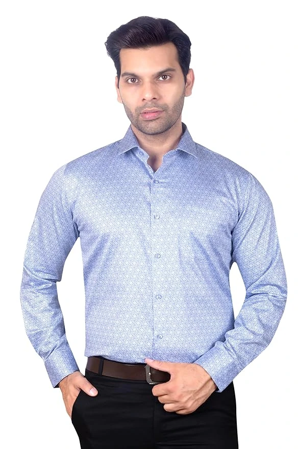 This formal shirt for men features a sophisticated light yellow shade with a subtle printed pattern, designed for professional and semi-formal occasions. It offers full sleeves, a button-down front, and a classic collar, providing both a stylish look and a comfortable fit suitable for office wear or formal events.