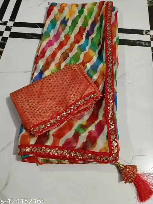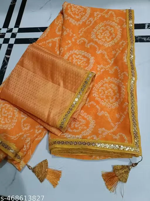 Elegant unstitched women's saree, featuring intricate embroidery, decorative borders with mirror detailing, and handcrafted tassels. Made from soft, comfortable fabric, this saree is perfect for traditional gatherings, festive events, or daily ethnic wear. Supplied with a blouse piece for personalized tailoring. The mirror work, tassels, and embroidery add a graceful and sophisticated touch to any ensemble.