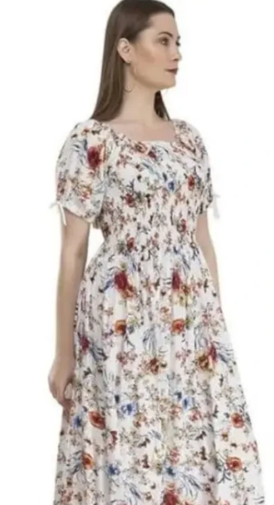 Chic white full-length gown dress featuring classic black polka dot prints, puffed long sleeves, and layered mesh tiers for a voluminous, airy silhouette. Crafted from lightweight poly crepe and mesh fabric, this gown is perfect for parties, formal events, or summer occasions, blending playful retro motifs with modern elegance and comfortable movement.